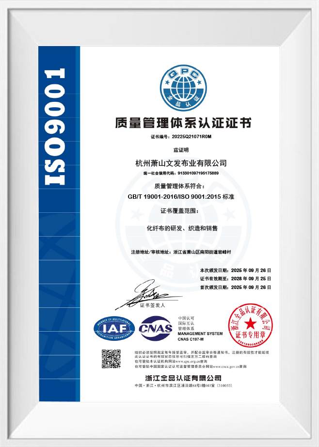 WEITERLESENDie Auswahl eines zuverlässigen Oxford-Stofflieferanten ist entscheidend, um eine gleichbleibende Qualität, eine stabile Versorgung und die Einhaltung internationaler Standards sicherzustellen. Bei Hangzhou Xiaoshan Wenfa Textile Co., Ltd. nutzen wir unsere integrierten F&E- und Fertigungskapazitäten, um bei allen unseren Produkten hohe Standards aufrechtzuerhalten. Persönlich betone ich gegenüber Kunden, dass die Zusammenarbeit mit einem Lieferanten mit fortschrittlichen Wasserstrahlwebmaschinen und ISO-Zertifizierungen sowohl Leistung als auch Sicherheit gewährleistet.