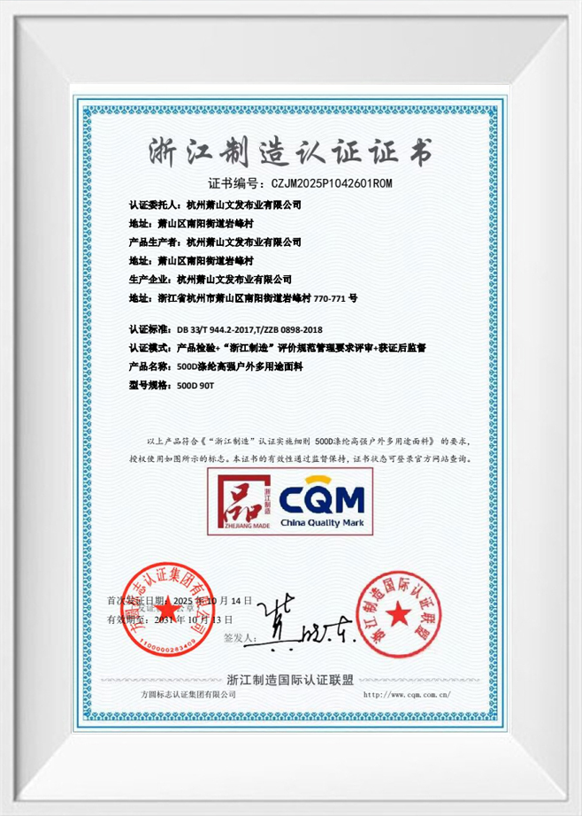 Die Partnerschaft mit einem zuverlässigen Oxford-Stofflieferanten ist für Marken, die Qualität, Individualisierung und nachhaltige Produktion suchen, von entscheidender Bedeutung. Wir nutzen die integrierte Lieferkette und das technische Know-how von Hangzhou Xiaoshan Wenfa Textile Co., Ltd. und bieten hochwertige OEM- und ODM-Oxford-Stoffe, die für Gepäck, Outdoor-Ausrüstung und Kinderprodukte geeignet sind. Persönlich glaube ich, dass die Wahl eines Lieferanten mit fortschrittlichen Maschinen, Zertifizierungen und globaler Erfahrung der beste Weg ist, um sowohl die Produktleistung als auch den Markterfolg sicherzustellen.